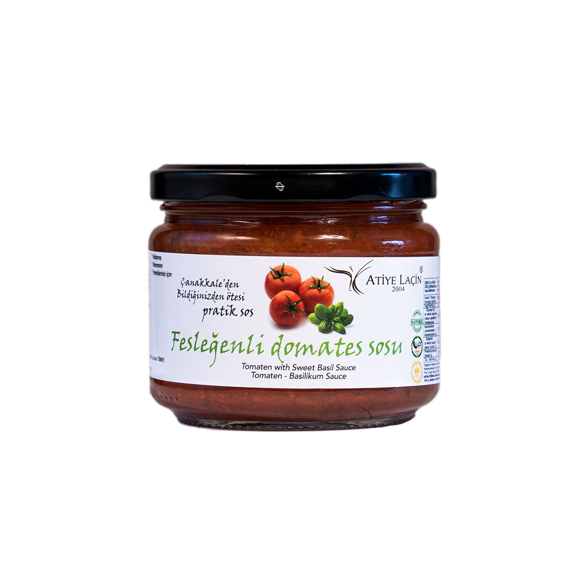 Atiye Laçin Basil Tomato Sauce is a vibrant, authentic Turkish pasta sauce crafted with 82% ripe tomatoes, fresh basil (2%), garlic (1%), salt, and olive oil, delivering garden-fresh flavor in a convenient 300g jar for Dubai's Italian-Turkish fusion kitchens. This natural, additive-free fesleğenli domates sos elevates pasta, pizza, or grilled meats with its herbaceous aroma and rich tomato base—perfect for health-conscious shoppers on Amazon, Trendyol, or UAE grocery sites. Savor the clean-label purity of Atiye Laçin basil tomato sauce, a vegan, gluten-free essential blending Mediterranean herbs with Turkish tradition.